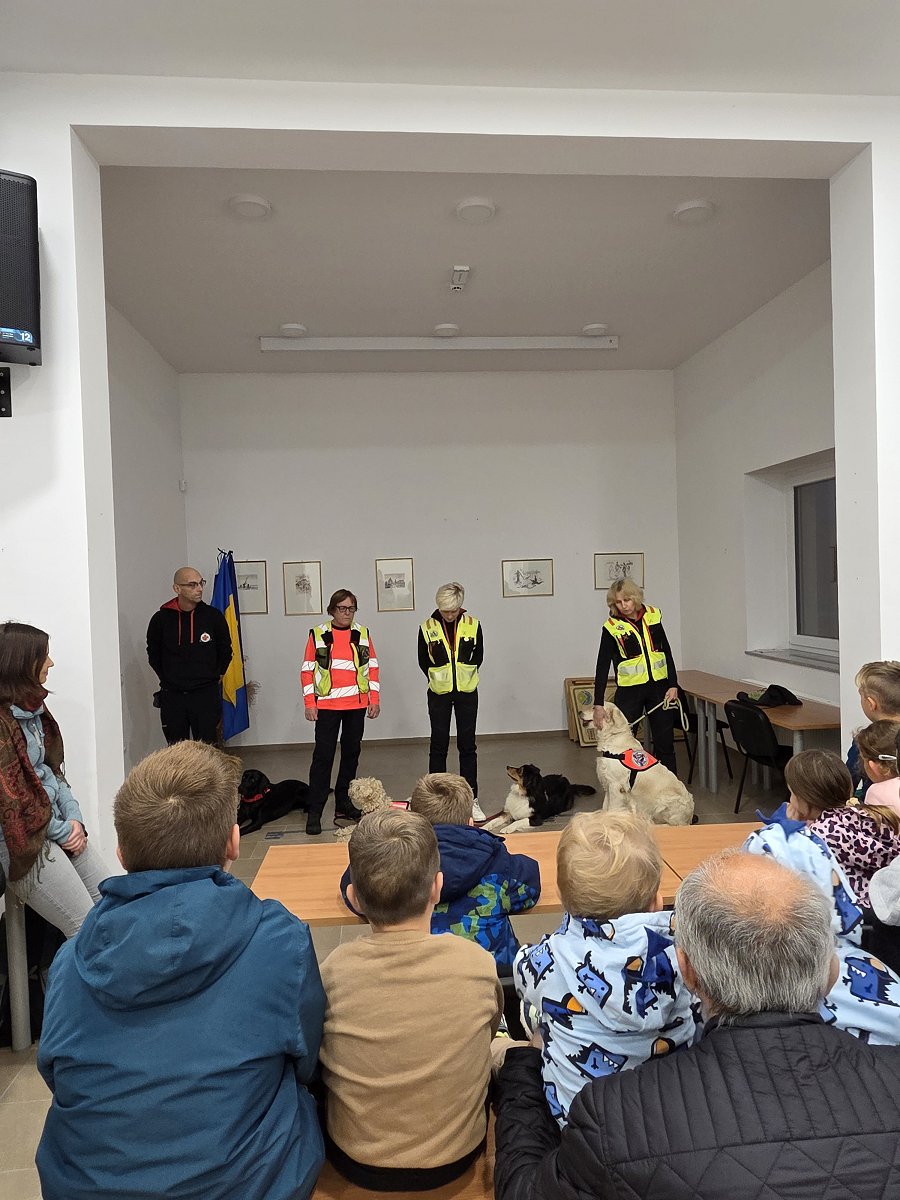 V petek, 21. 11. 2025, so Male umetnike obiskali štirje kužki s svojimi vodniki iz enote reševalnih psov Slovenije.
