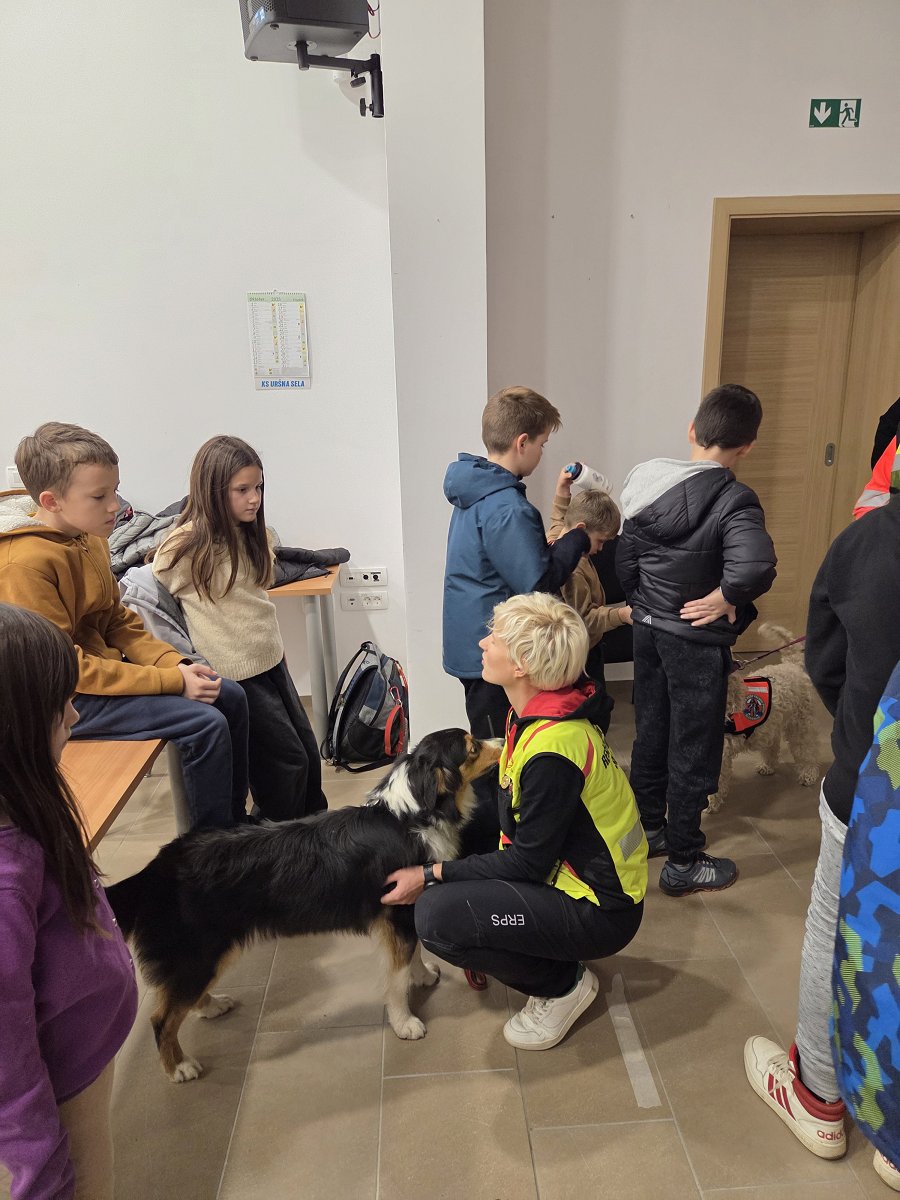 Predstavili so nam svoje poslanstvo, delo, usposabljanja in treninge, ki jih opravljajo, da lahko pomagajo ljudem v najrazličnejših situacijah.   Otroci so si z navdušenjem ogledali tudi praktični prikaz iskanja pogrešane osebe. Ob tem so se veliko naučili, spoznali pogumne štirinožne junake, predvsem pa neizmerno uživali – še posebej pri crkljanju kosmatih prijateljev.   Iskrena hvala enoti reševalnih psov Slovenije za čas, predano znanje in izjemen obisk.