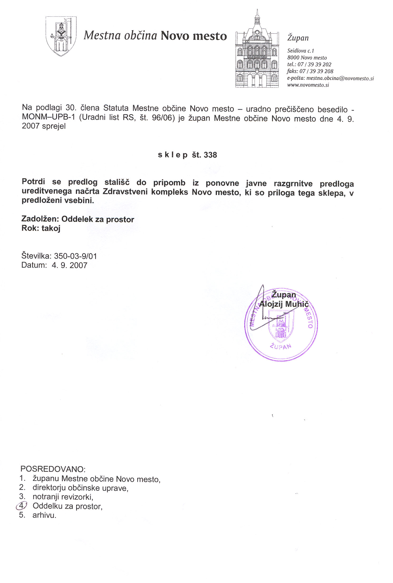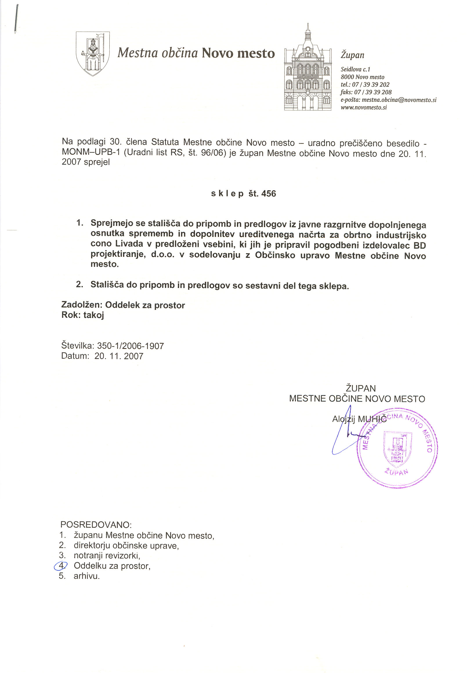 Župan MO NM je sprejel stališča do pripomb in predlogov iz javne razgrnitve dopolnjenega osnutka sprememb in dopolnitev ureditvenega načrta za obrtno industrijsko cono Livada in predloga ureditvenega načrta Zdravstveni kompleks Novo mestoStalisca_UN_Livada_sprejeta.doc