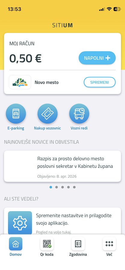 Aplikacijo Sitium za pametne telefone lahko pridobite na Apple app store ter Google app store. V aplikacijski trgovini naložite aplikacijo na vašo napravo ter ob postopku prijave navedete le vašo telefonsko številko naprave, ki jo uporabljate in na katero je vezana uporaba aplikacije. Sistem vam bo posredoval potrditveni SMS, s pomočjo katerega potrdite, da ste prijavo zagnali vi. Vnos vaše telefonske številke je potreben le zaradi preprečevanja zlorab.