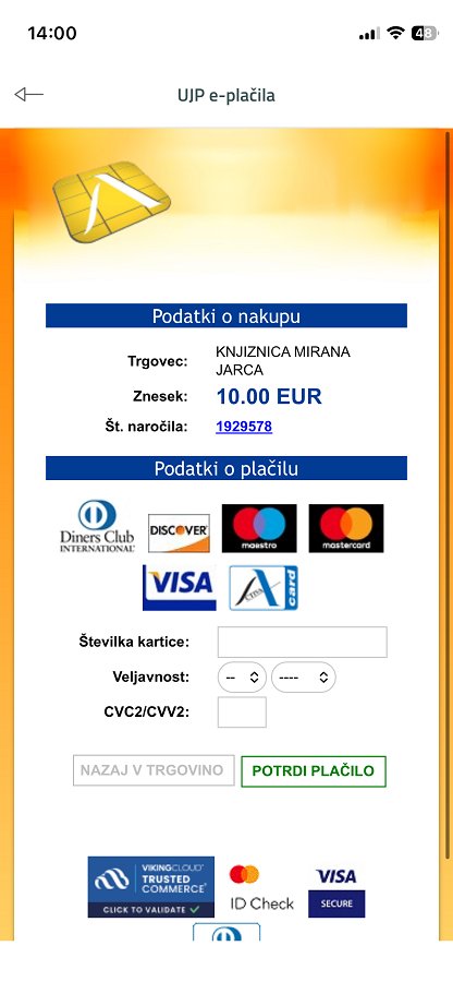 5. Vnesite podatke in potrdite plačilo