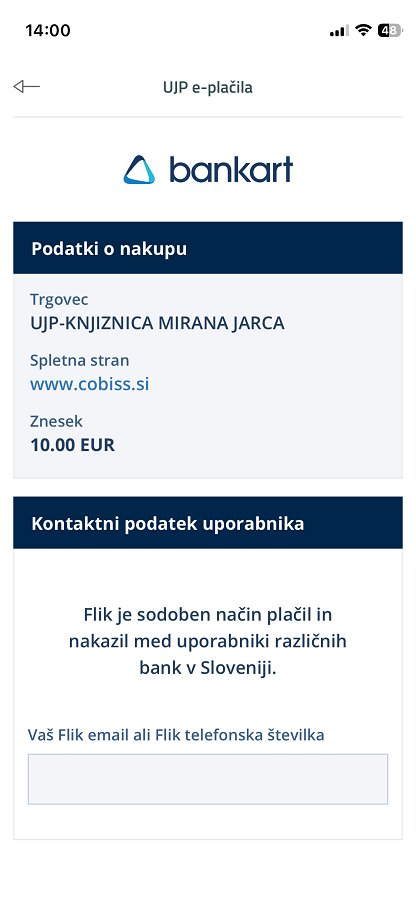 - Flik → vnos telefonske številke ali e-maila (Bankart)